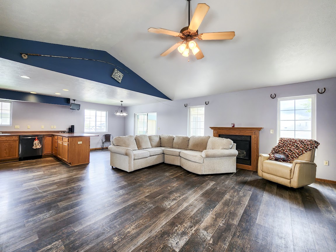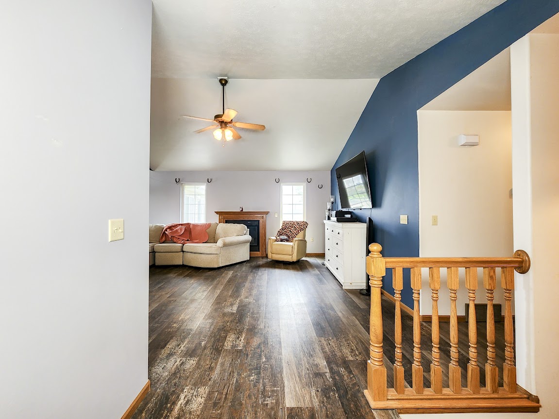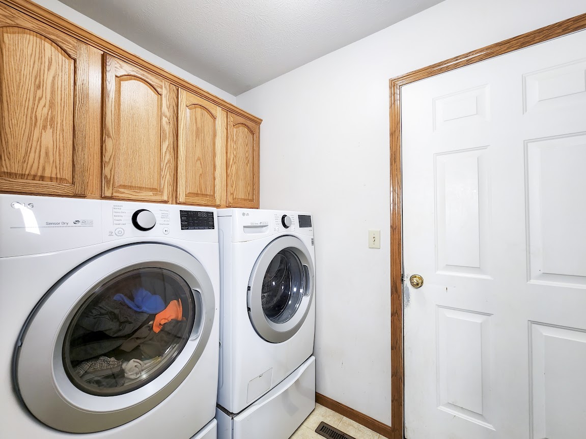 The 2-car garage and extra concrete parking pad provide ample space for vehicles.