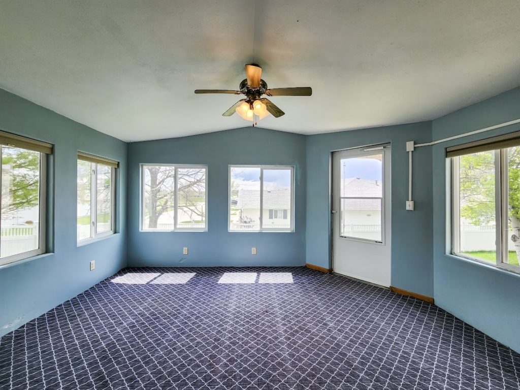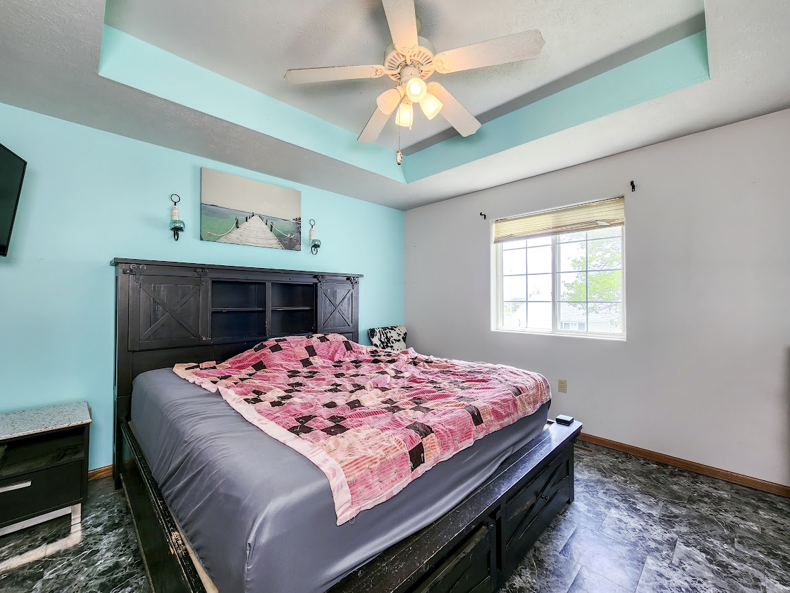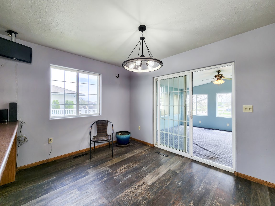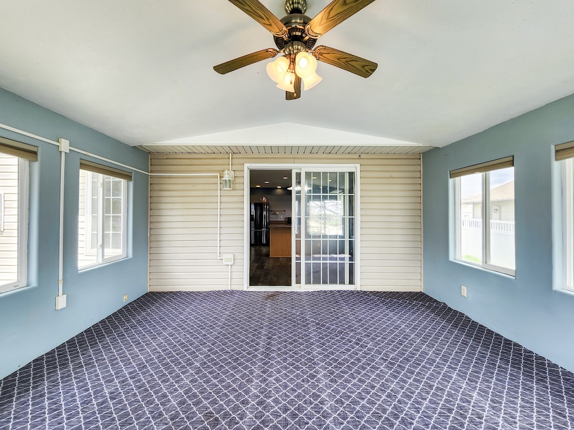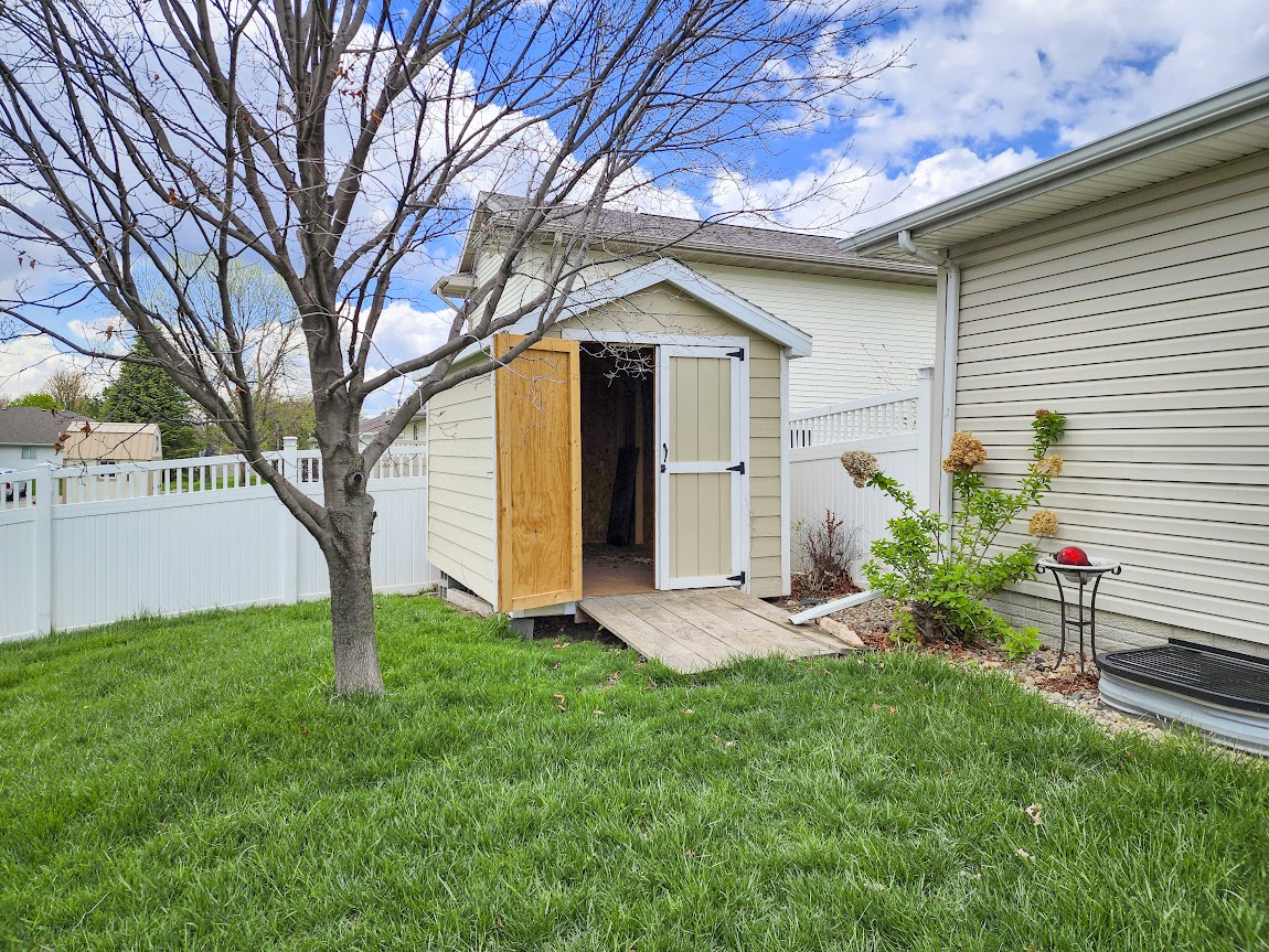 Outside, enjoy the privacy of a fenced yard, with durable vinyl fencing, a small patio, and a sunroom perfect for relaxation. An additional outdoor shed offers extra storage, and the yard is equipped with automatic sprinklers to keep the lawn lush.